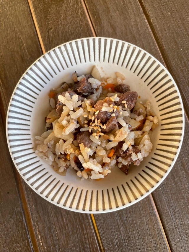ホクホク秋ご飯【猪と根菜の焼飯】